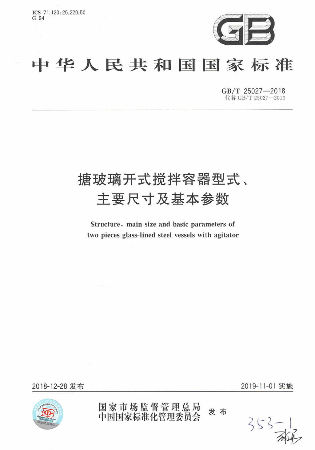 • 搪玻璃設備合格檢驗報告